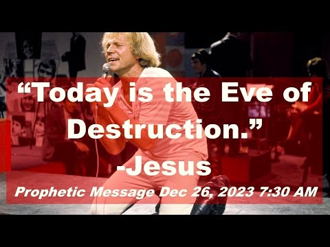 Prophetic Message December 26, 2023, “TODAY IS THE EVE OF DESTRUCTION” -JESUS Today, the Lord is begging the world to listen to His message, “December 26, 2023 is the Eve of Destruction.” Repent! (An audible message granted at 7:30 am.) May God permit many to wake up from a deep sleep before they die immersed unawares in what is about to overtake the world.